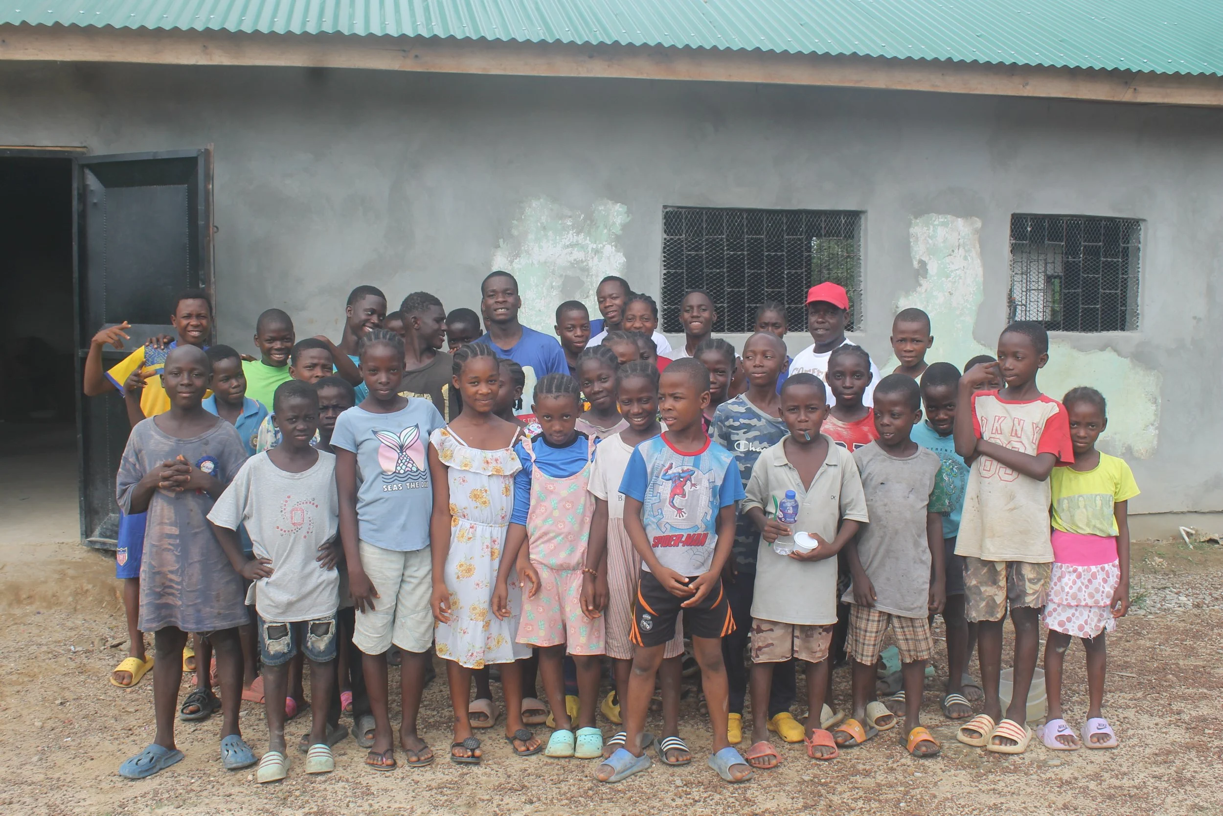 About half the kids, and Director Samuel Paye, at the orphanage.